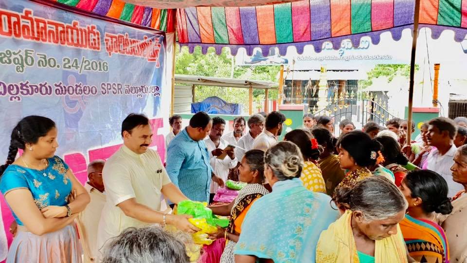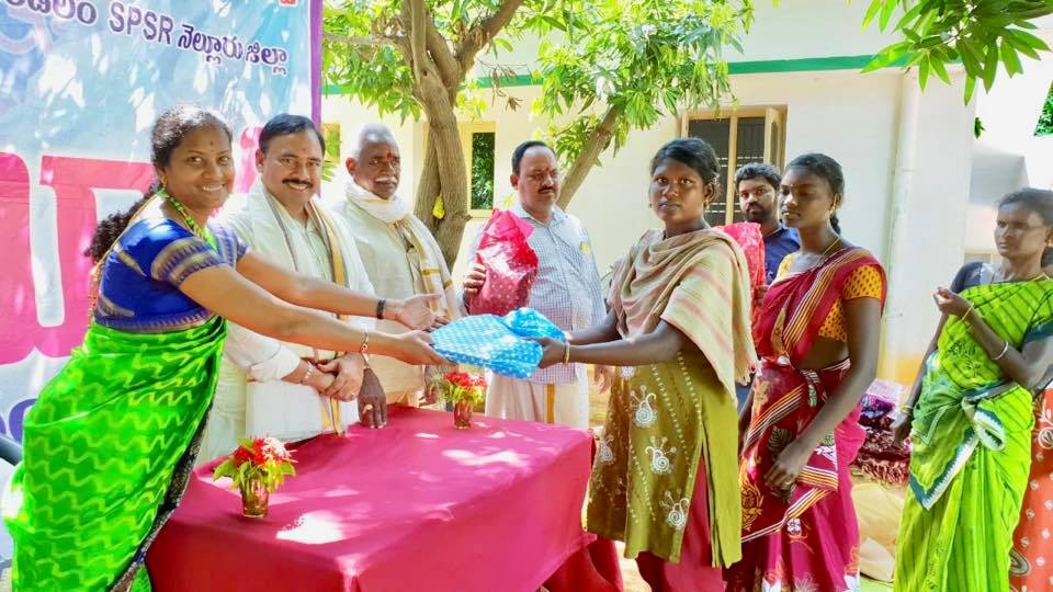 Distributed Sarees, Blouses, Lungis and Towels to 100 poor and needy families at ST colony, Kadivedu village, Chillakur Mandal, Nellore Dist.
