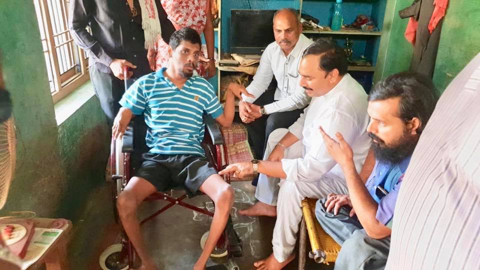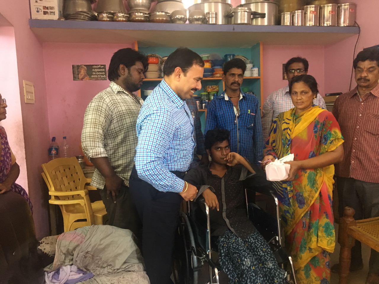 Visited Ramesh Gandhi house at Gudur, Nellore Dist. A P , who is Mentally & Physically handicapped and Distributed a Wheel chair and undertaken for monthly medicines, nutrition food.